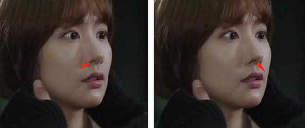 朴敏英的鼻孔被压的过于小了。